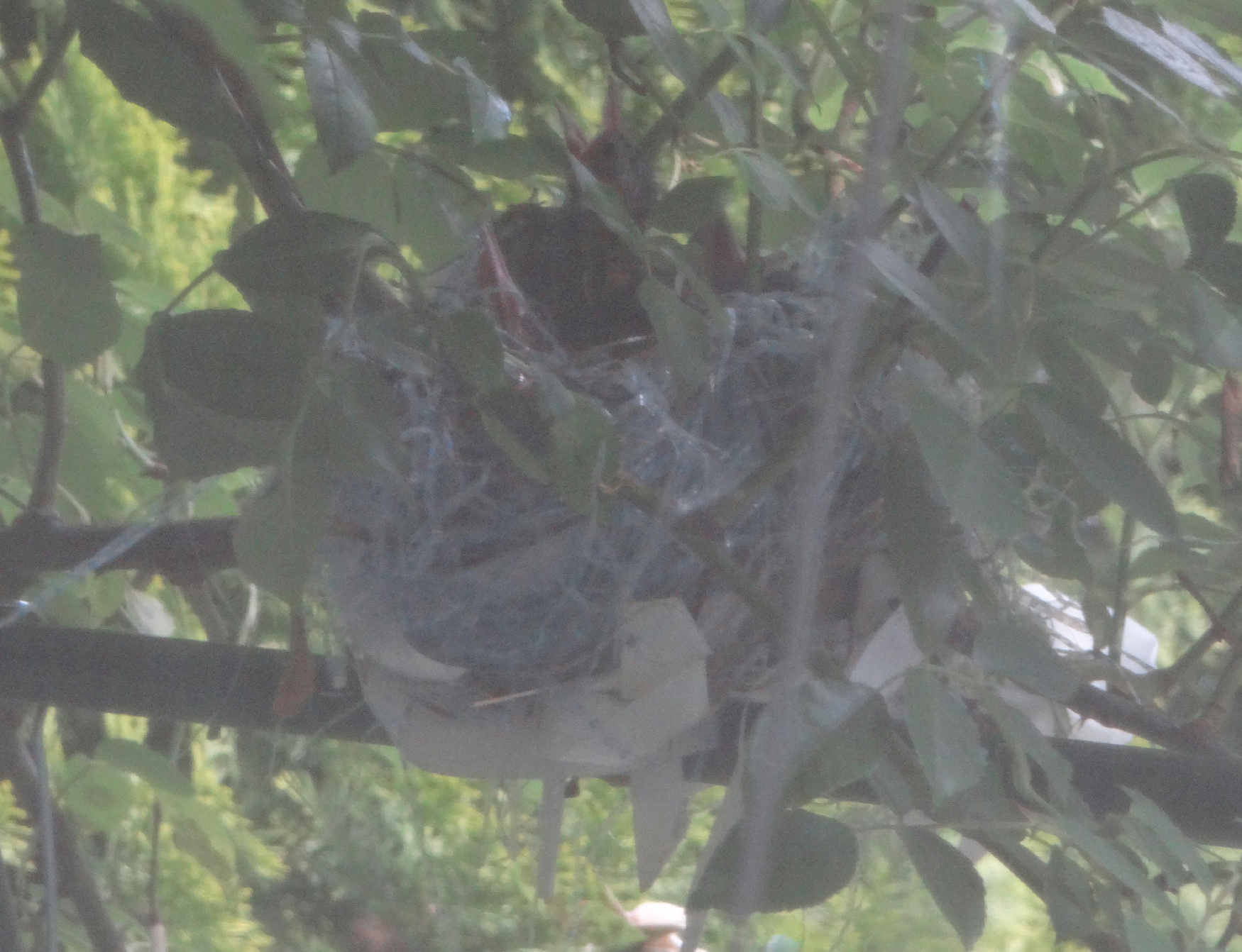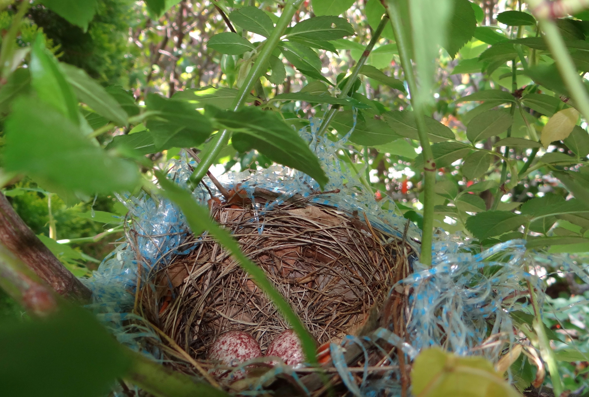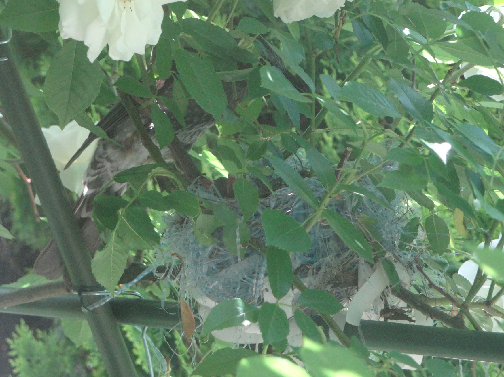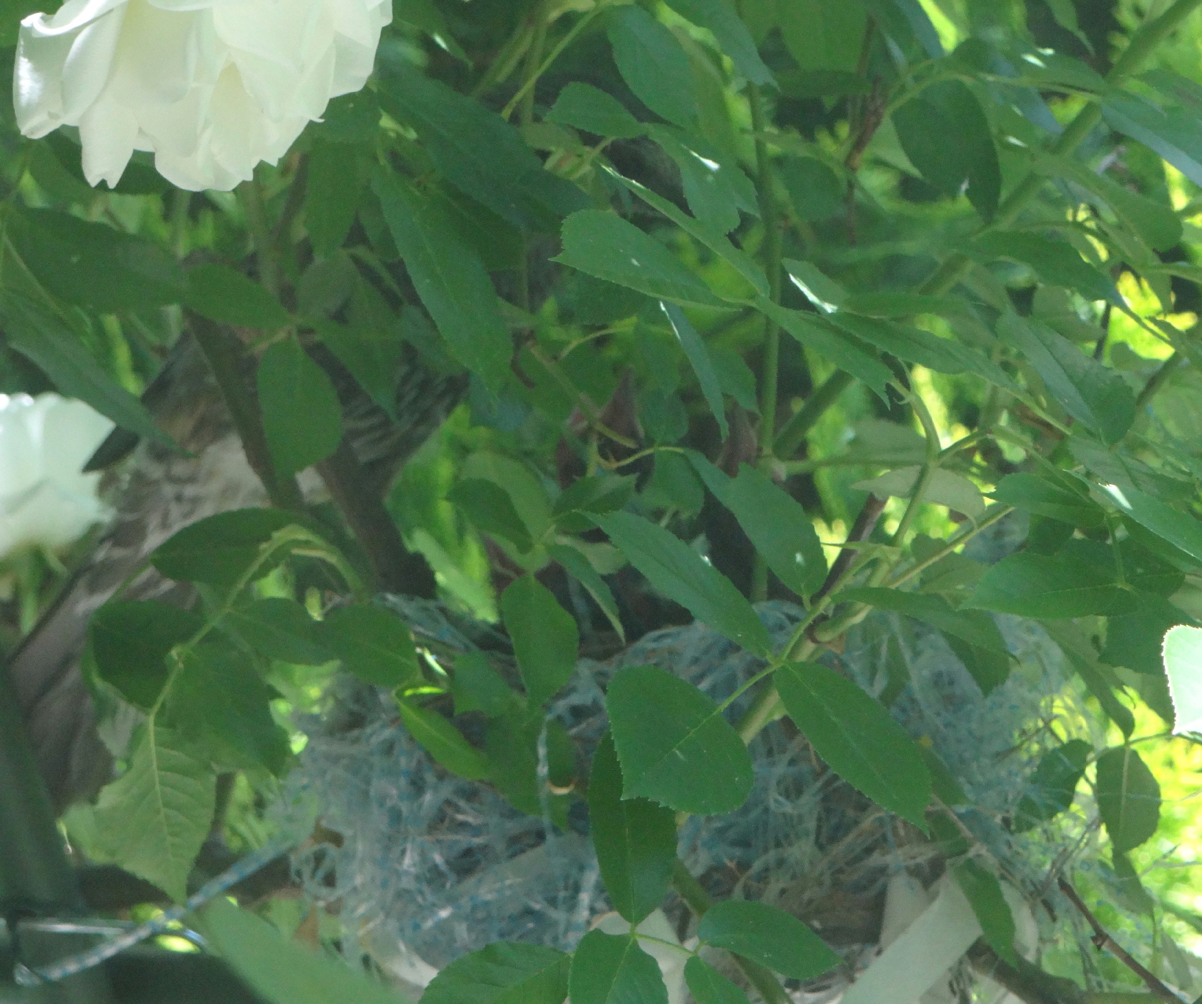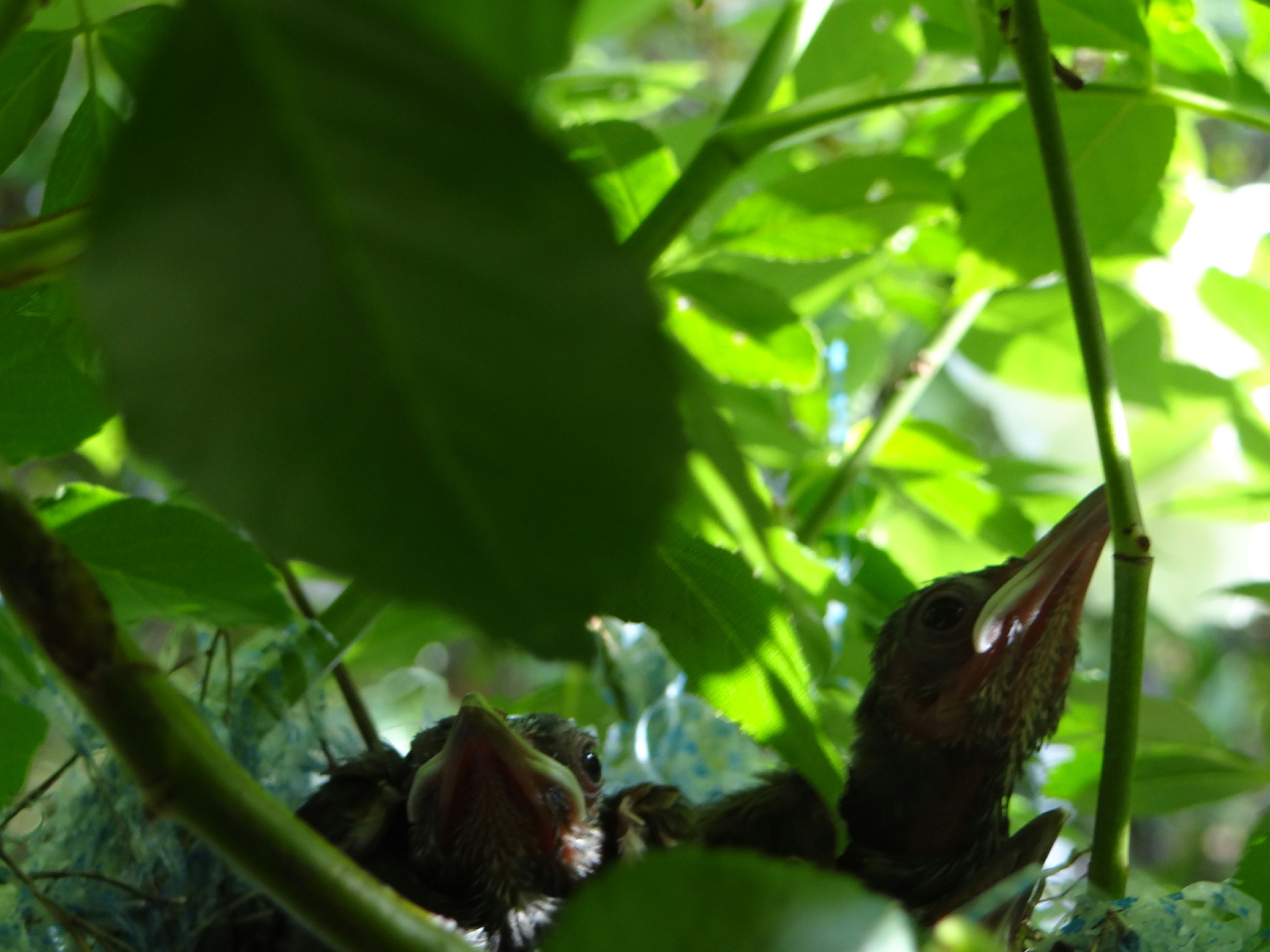 今日はつるバラの花がら摘みを行いました。その際に巣を覗いてみると誰も居ませんでした。昨日のお昼過ぎまでは間違い無く雛達が居たのですが、巣立ったのでしょうか。雛を初めて確認してからまだ日が浅いので少し心配ですが、近くの神社の木からヒヨドリの雛達と思しき鳴き声が聞こえてくる気もします。みんな元気なら良いのですが。