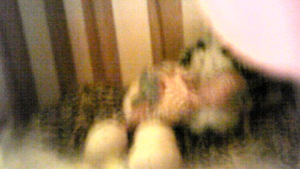 今日の昼頃様子を見に行くと、小さな鳴き声が聞こえるではありませんか。もしやと思い、そっと巣箱を覗いてみると生まれたての雛らしき姿が。