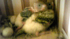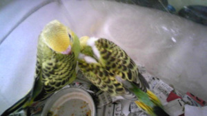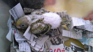 今朝から昼過ぎまで何回か挿し餌を食べさせようとしましたが、昨日までとは違い、2羽共ほとんど食べません。鳥かごの中には、皮むき餌、皮付き餌をそれぞれ入れて置いてあるのですが、そちらを少しずつ食べているようです。でも減った量からすると全然足りないはずですが。