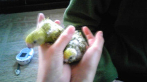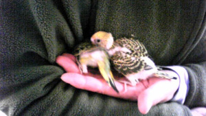 2羽の雛が生後20日前後になりましたので、巣箱から出しました。今日からは人の手で育てて行くことにします。