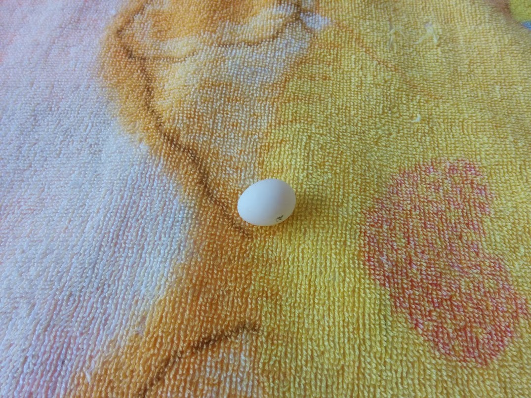 下の写真は、ツッキーが昨日産んだ最後の卵です。